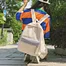 Panelled color Linen women backpack