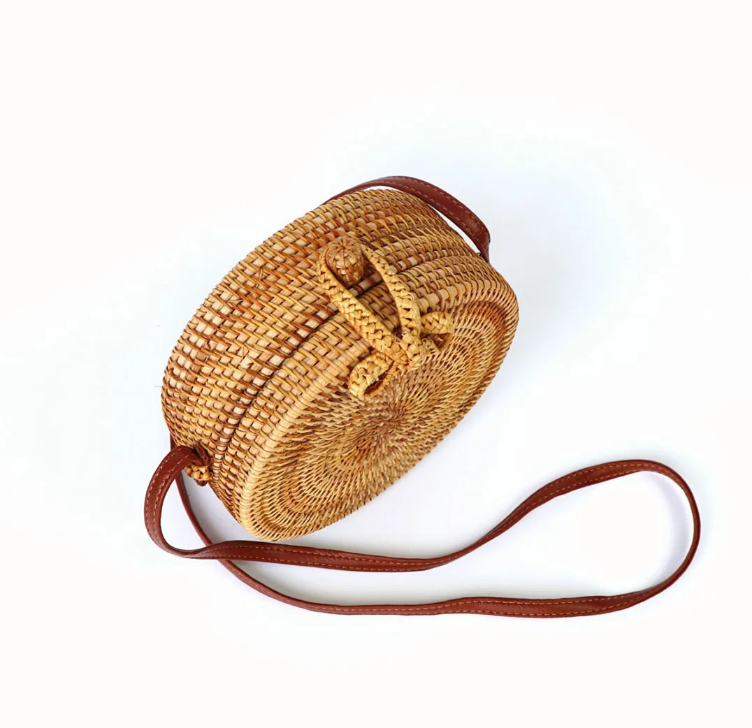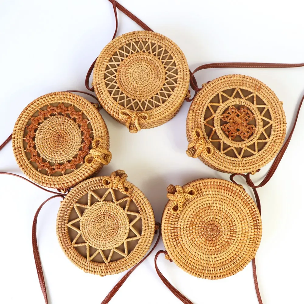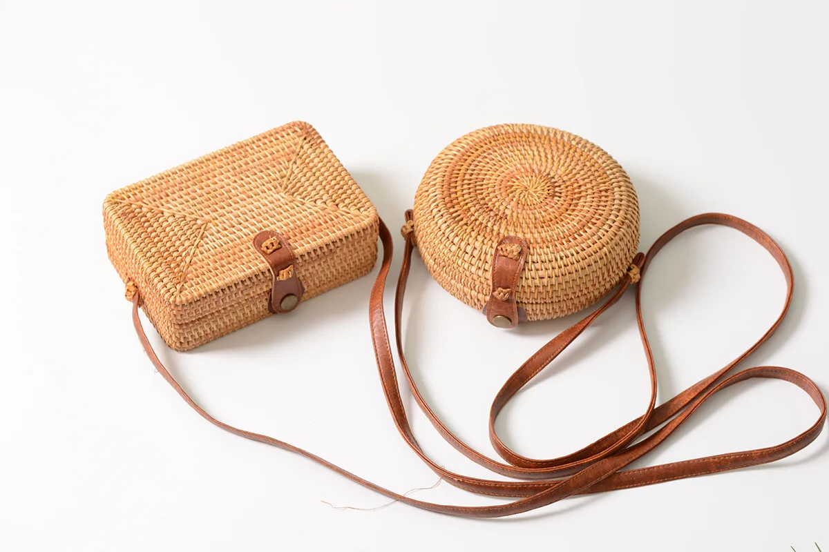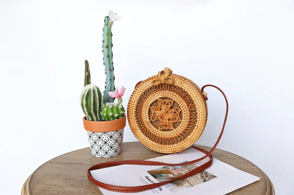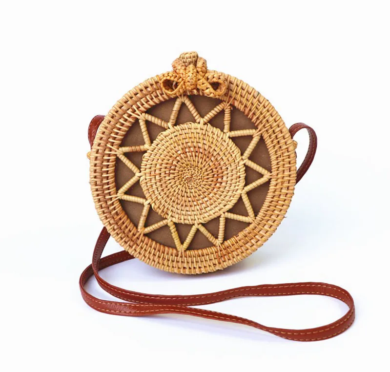 Design:rattan handmade vine weaving hollow five-pointed star leather buckle bag