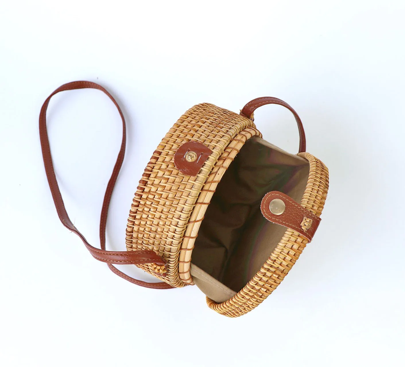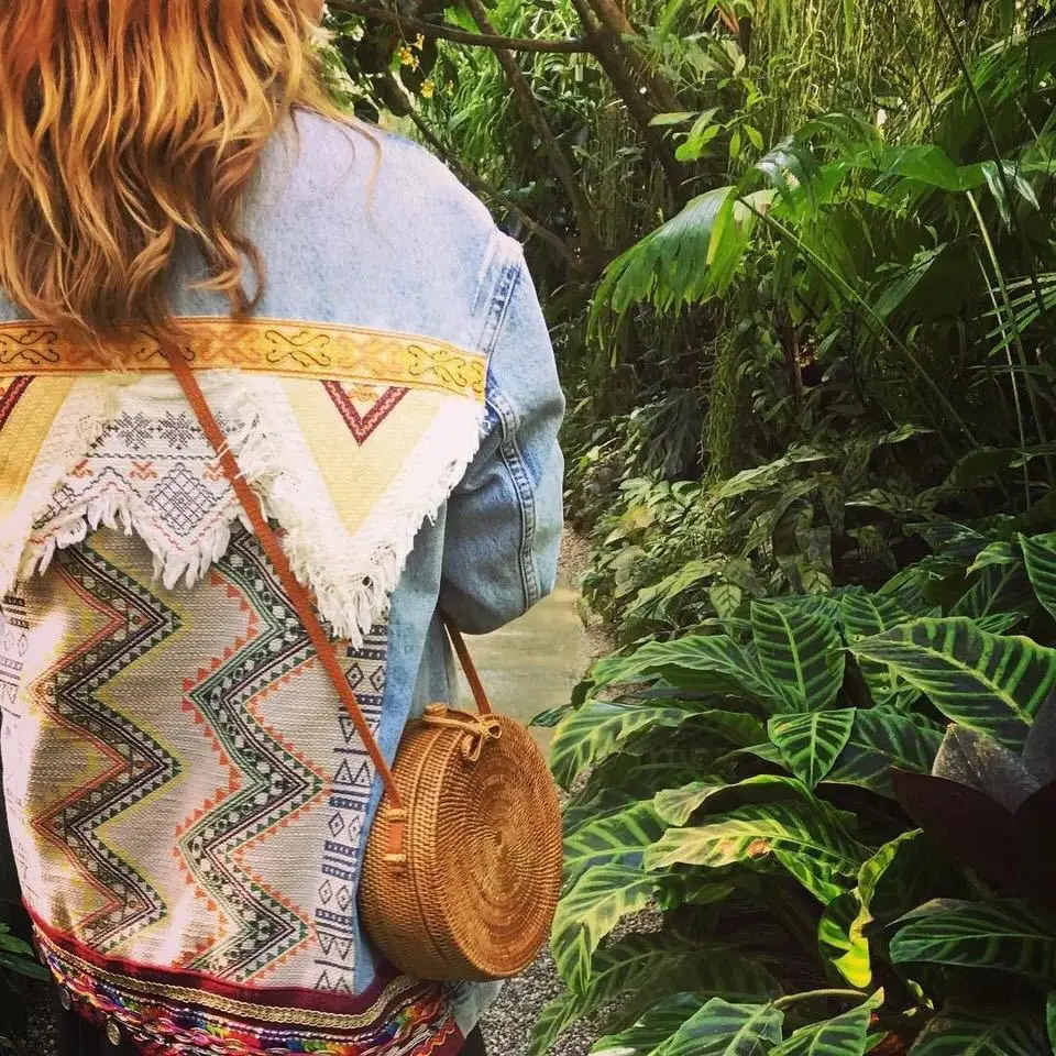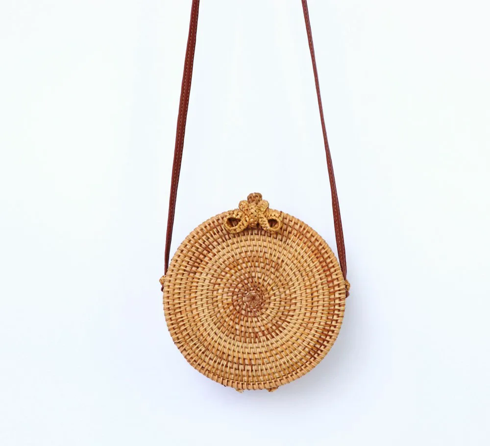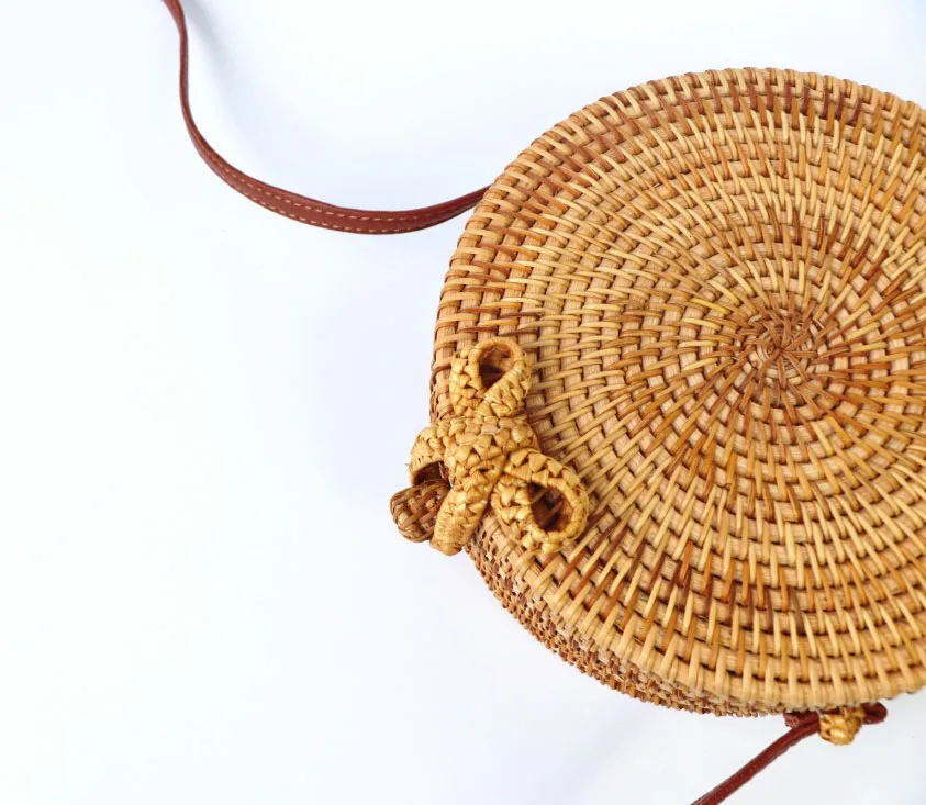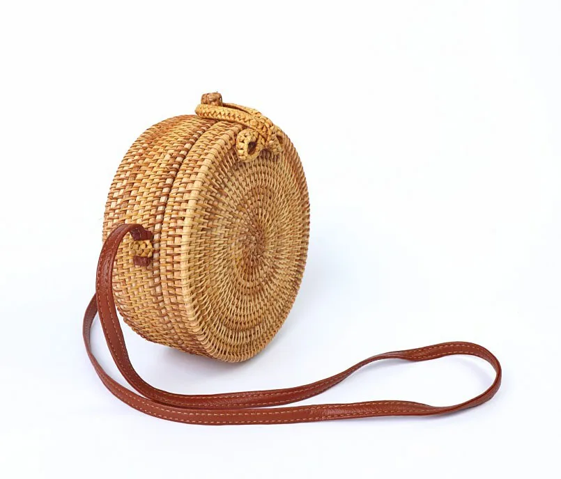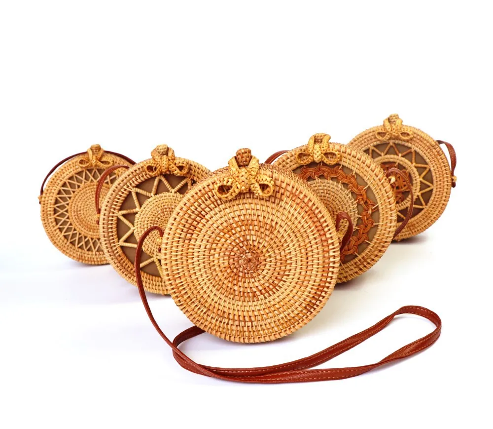 Design:rattan handmade vine weaving hollow five-pointed star leather buckle bag
