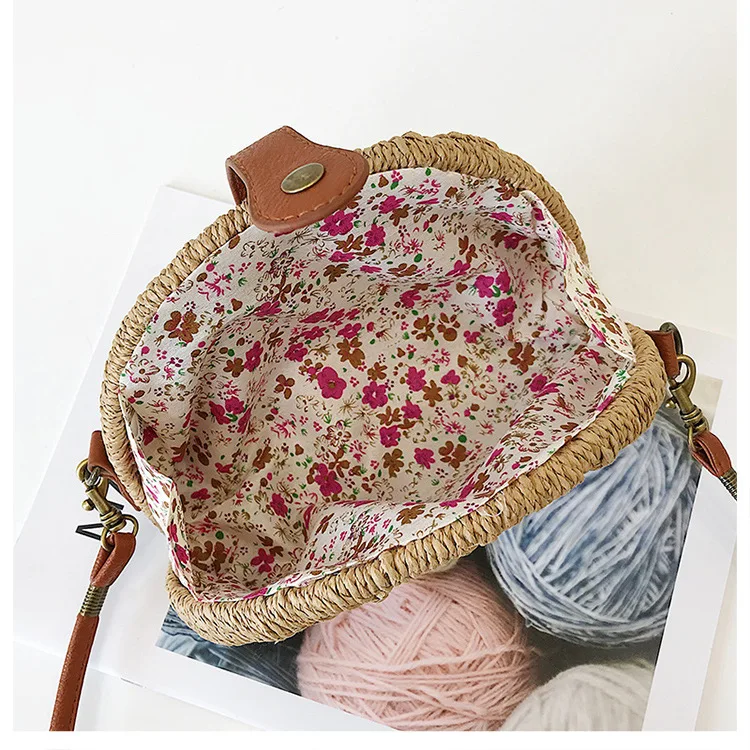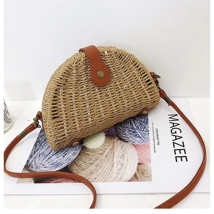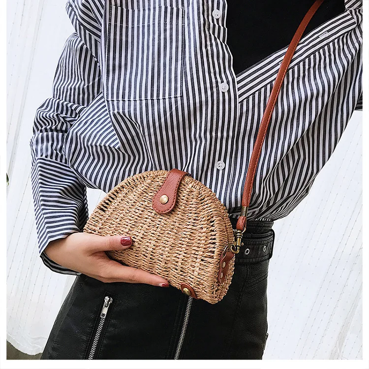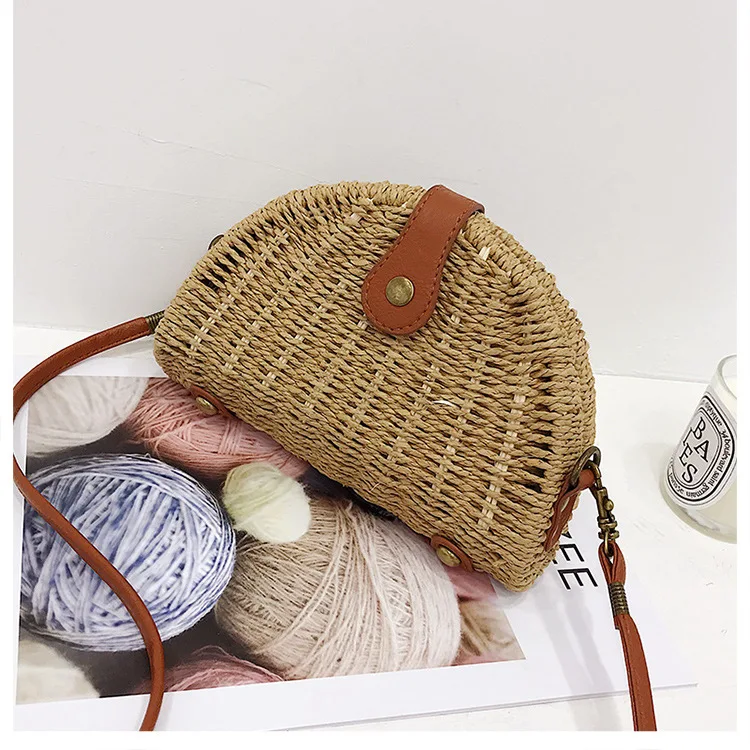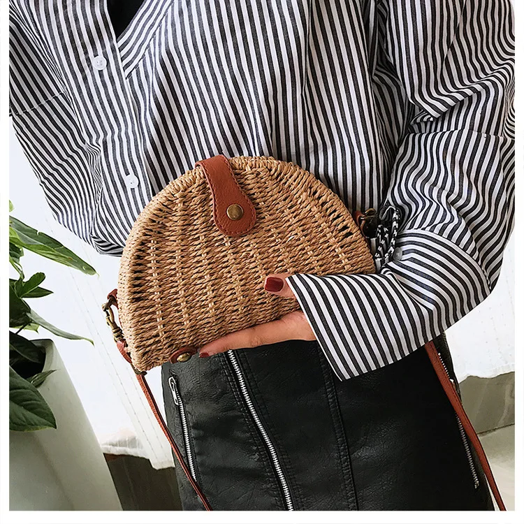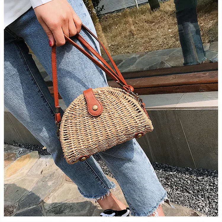 Design:rattan handmade vine weaving hollow five-pointed star leather buckle bag