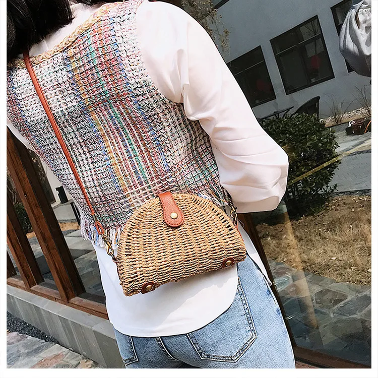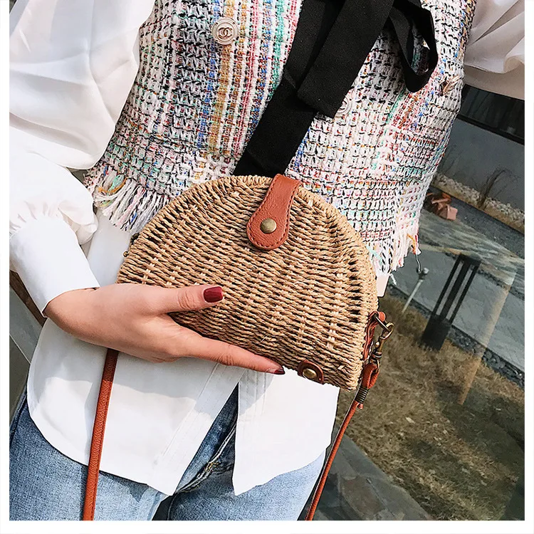 Miyahouse Sale Rattan Handmade Messenger Bag Vine Weave Symmetrical Geometric Design Hollow Five-pointed Star Women Shoulder Bag
