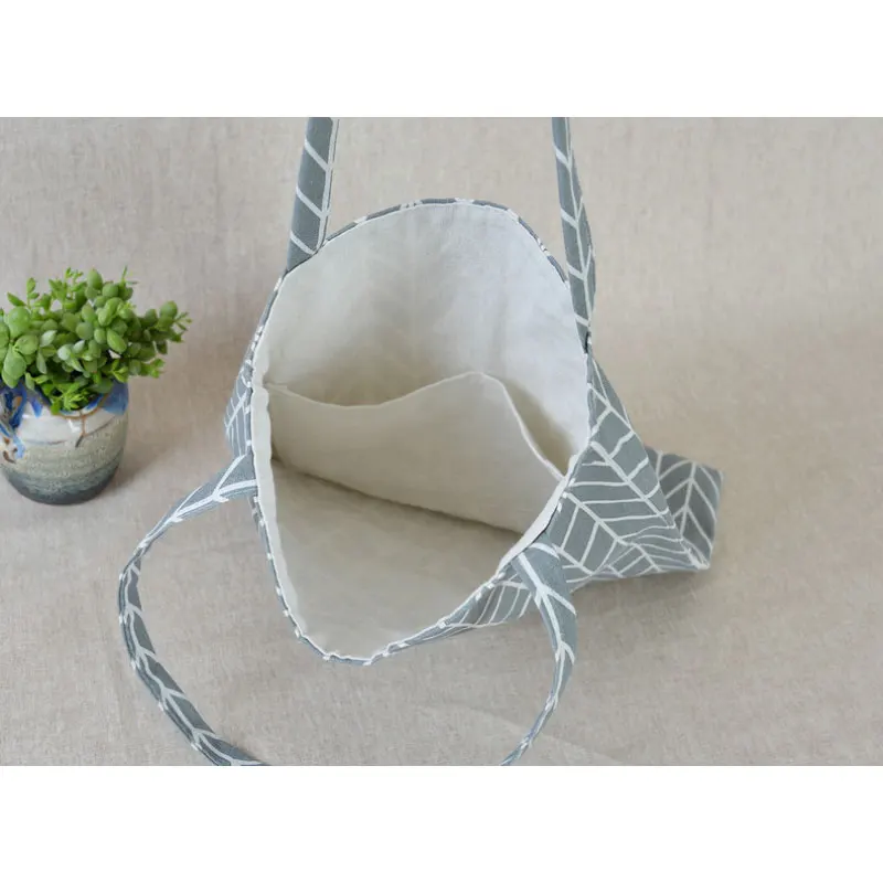 *ECO Linen Plaid Pattern Shopping Shoulder Bag without Lining
